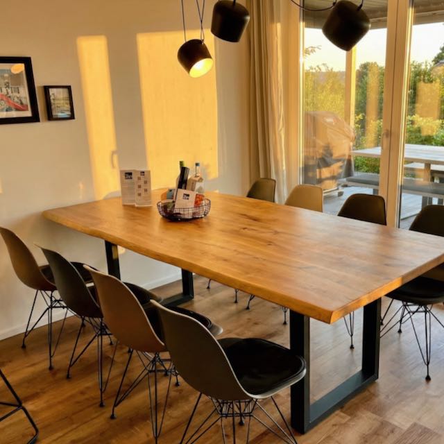 In der voll ausgestatteten Küche kann gekocht, auf der Terrasse gegrillt werden – oder Sie verlegen die Besprechung direkt nach draußen: Am langen Gartentisch finden bis zu 12 Personen unter freiem Himmel Platz, begleitet von Ostseeluft und weitem Horizont.