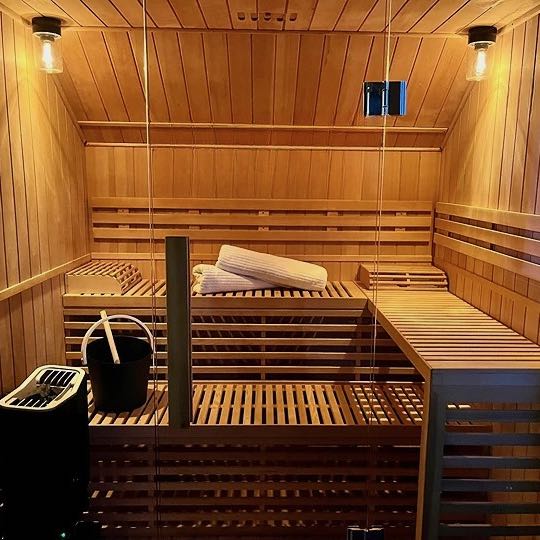 Das geräumige Luxus-Badezimmer im Obergeschoss bietet eine finnische Sauna für bis zu vier Personen.